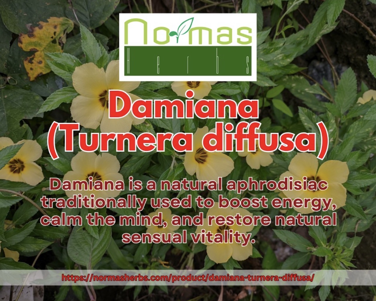 Damiana is a versatile herb known for its mood-enhancing, stress-relieving, and aphrodisiac properties. It helps alleviate anxiety, depression, and nervousness, while also supporting sexual health by boosting libido and reproductive function. Damiana can improve digestive health, relieve constipation, and balance hormones. Additionally, it’s used to increase energy levels, combat fatigue, and promote overall mental clarity.